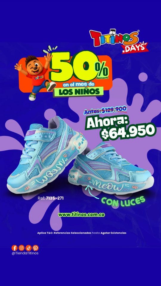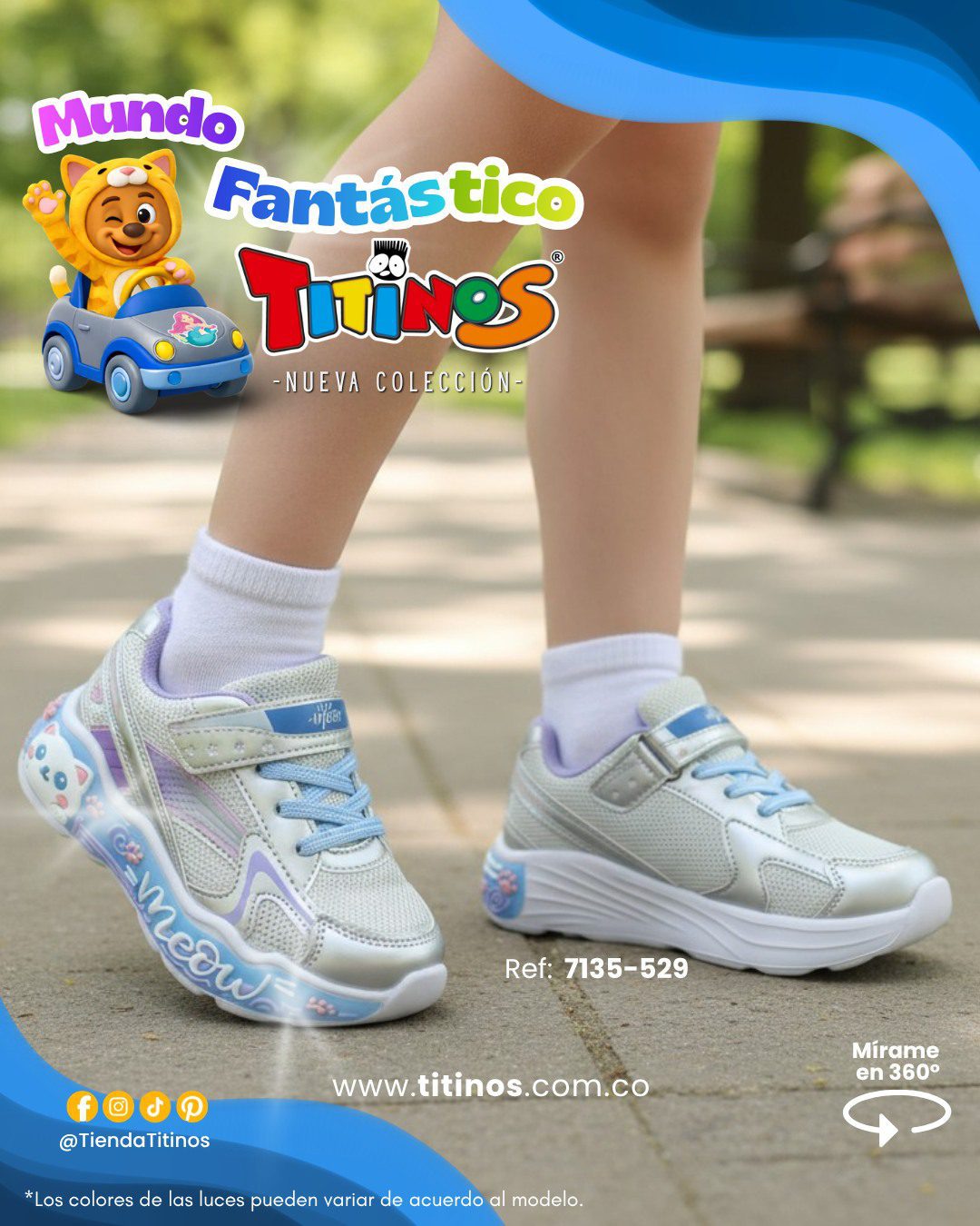 Tenis Niña Fashion Gato Aguamarina Titinos