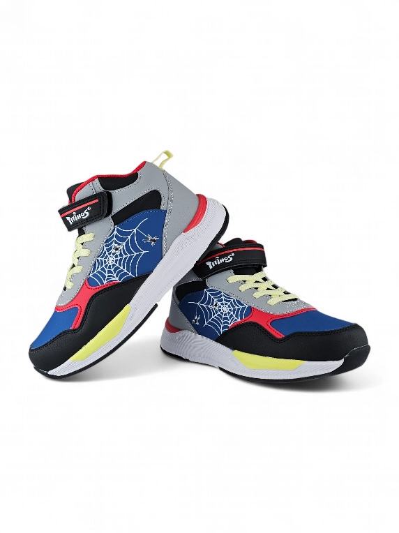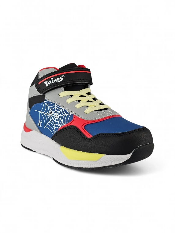 Botín Araña en Velcro y banda elástica para Niño color Negro y colores varios marca Titinos. ????️ Este botín casual para niño combina comodidad y estilo en un diseño único lleno de tonos vibrantes. Su base en color negro resalta los detalles multicolor y el llamativo diseño de telaraña en la cara externa, aportando un look moderno y divertido. Ideal para acompañar cualquier aventura, brinda resistencia, frescura y la originalidad que caracteriza a Titinos, convirtiéndose en la opción perfecta para destacar con confianza.