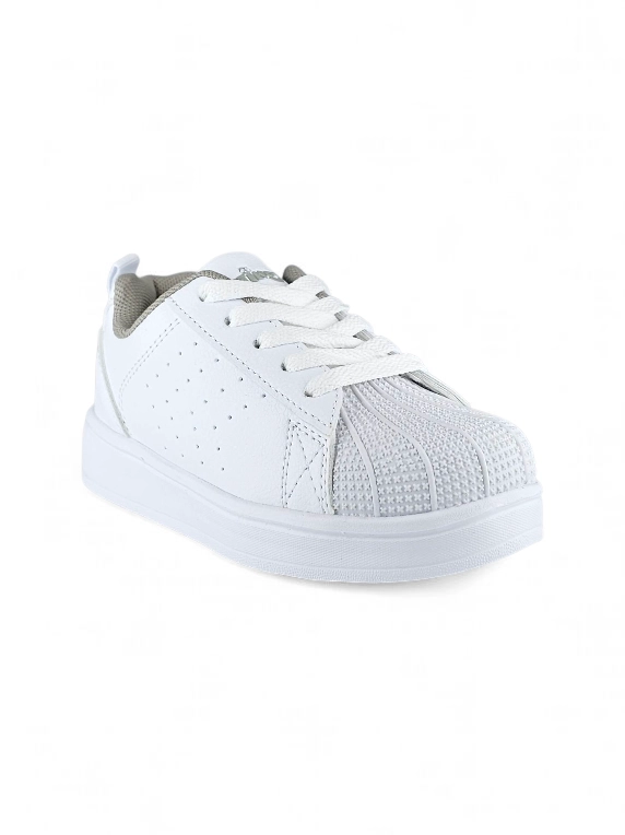 Tenis Cordón puntera de Caucho colegial color Blanco marca Titinos. ???? Estos tenis colegiales con cordón en color blanco combinan estilo clásico y resistencia para acompañar cada paso. Su puntera en caucho con relieve brinda mayor durabilidad y protección frente al uso diario, mientras que el diseño versátil en blanco asegura un look limpio y atemporal. Con la calidad Titinos y un ajuste perfecto, son el aliado ideal para el colegio y todas las aventuras cotidianas.