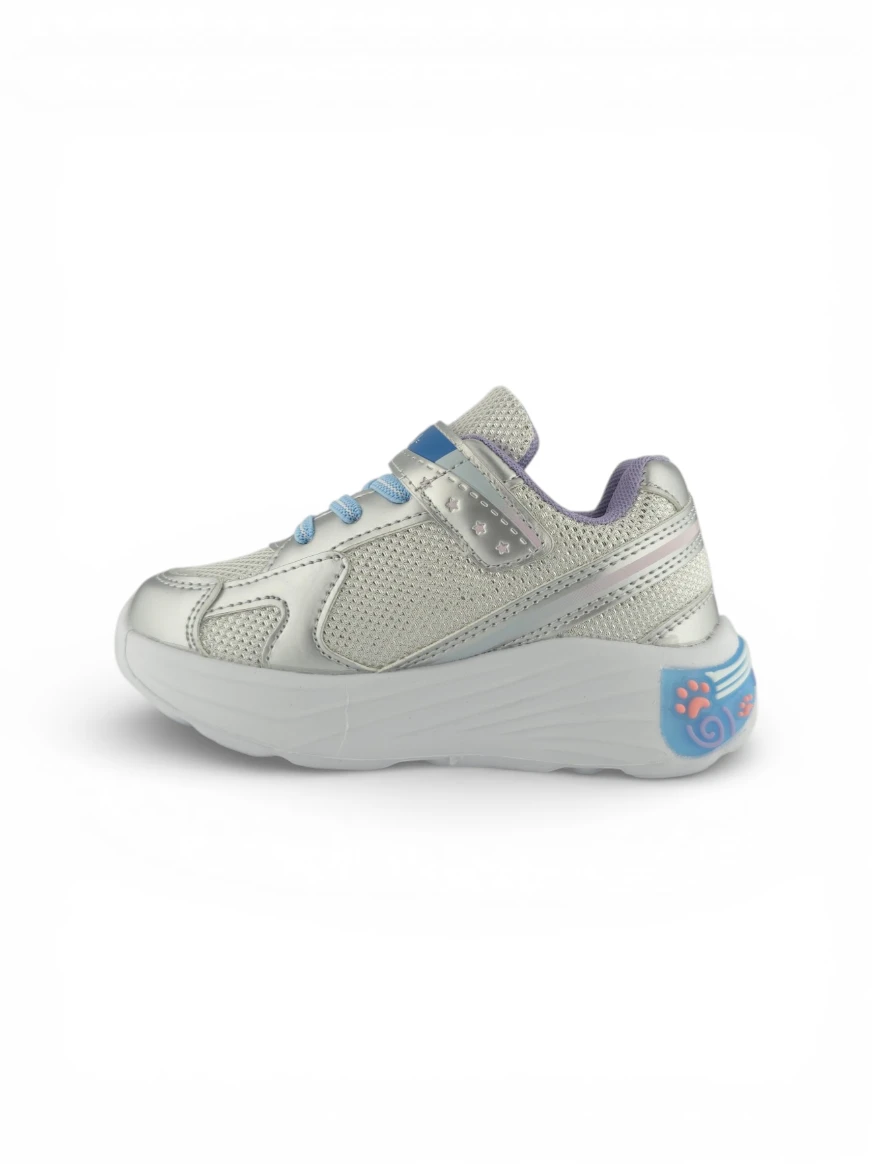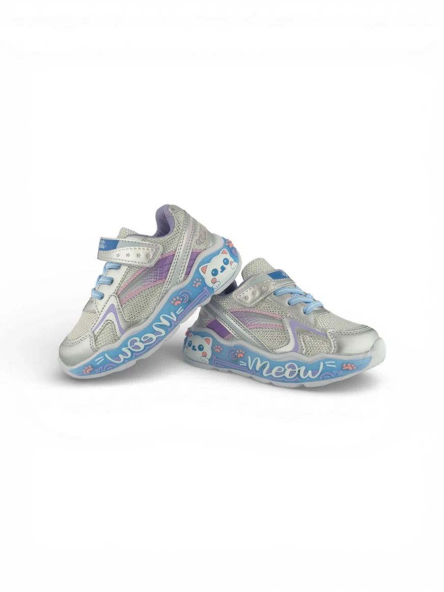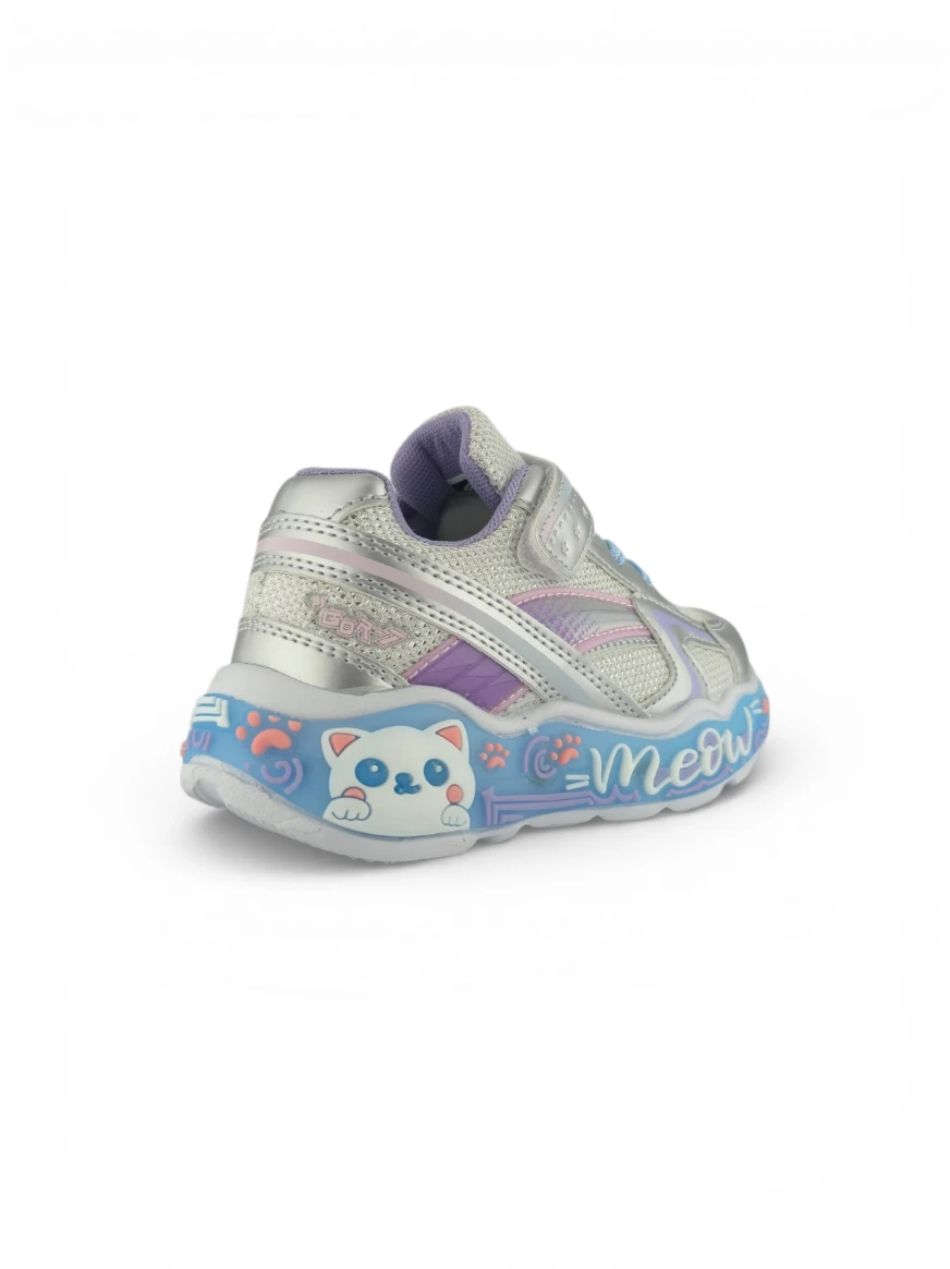 Tenis Niña Fashion Gato Plateado Titinos – 7135-529 🐱✨ Un diseño encantador que combina brillo, estilo y diversión en cada paso. Su acabado plateado y detalles de gato lo convierten en el favorito de las niñas, mientras sus luces multicolor aportan un toque mágico. Perfectos para acompañar sus días con comodidad, seguridad y mucha personalidad. 💖
