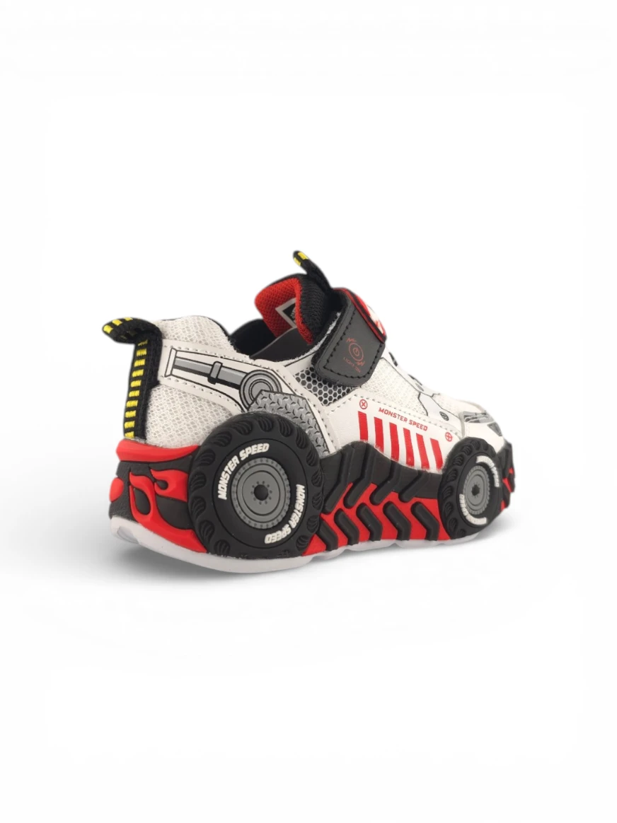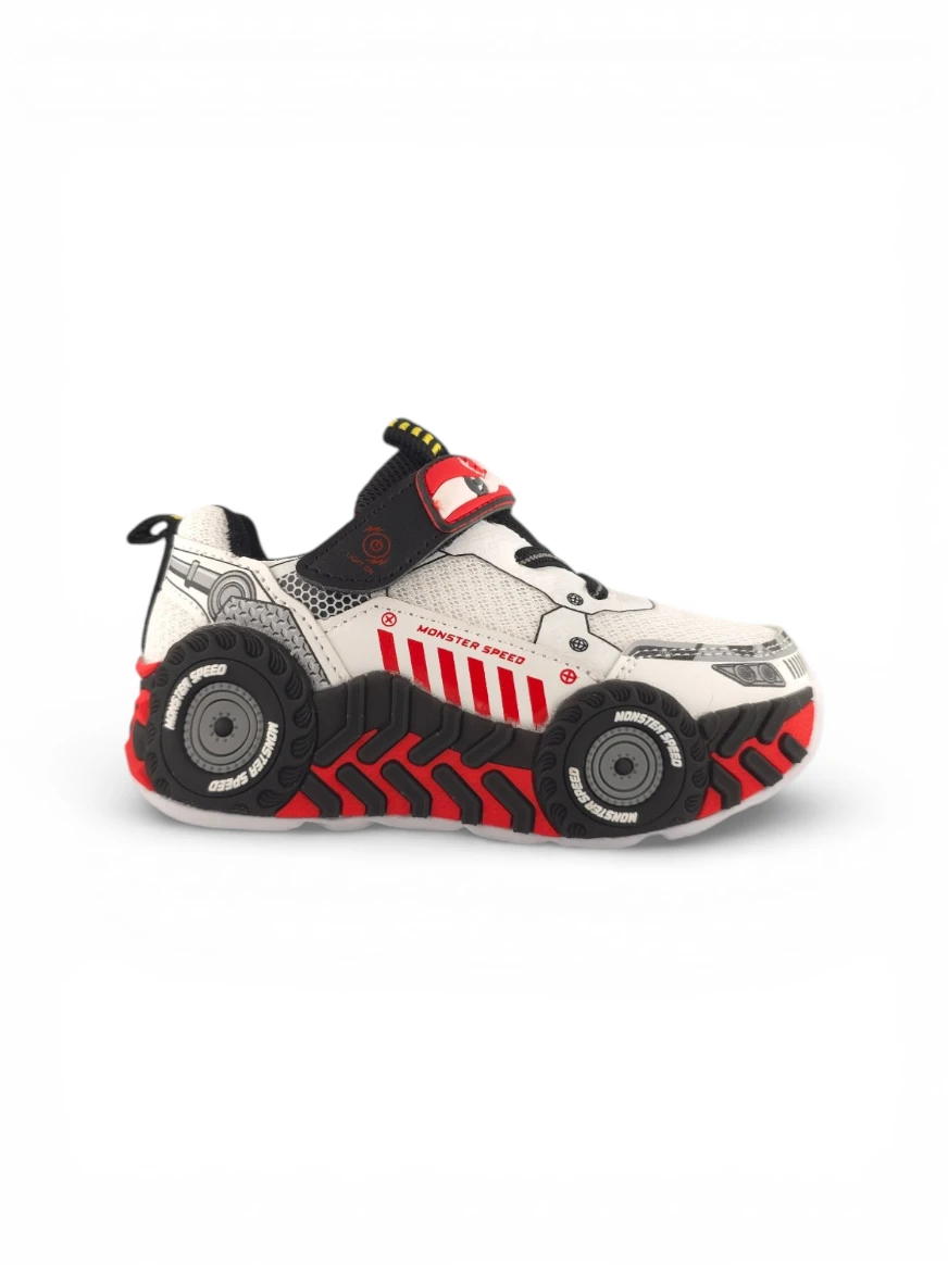 Tenis Niño Casual Carro Blanco Titinos – 7133-743. 🚗✨ Un diseño llamativo y divertido que combina estilo y funcionalidad para los pequeños amantes de los carros. Su acabado en blanco con negro resalta cualquier outfit, mientras que sus luces multicolor convierten cada paso en una experiencia llena de diversión y energía.